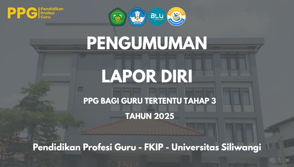 Berdasarkan hasil keputusan dari pusat mengenai pelaksanaan PPG bagi Guru Tertentu Tahap 3 Tahun 2025, maka mahasiswa perlu melakukan Lapor Diri di LPTK. Sebelum melakukan Lapor Diri di LPTK mahasiswa HARUS MELAKUKAN KONFIRMASI KESEDIAAN DAN AJUAN BERKAS DI SIMPKB dan setelahnya baru melaksanakan Lapor Diri di LPTK melalui: Link Lapor Diri dan Grup WhatsApp LPTK: […]